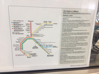 At the Milbrae Transit Station, as it is one of the bigger stations and also a station where lots of change-overs happen. I could empathize with several foerign travellers, I have experienced my home country system which is India's New Delhi Metro or Mumbai Metro and New York's Subway System- the SF BART is definitely different.